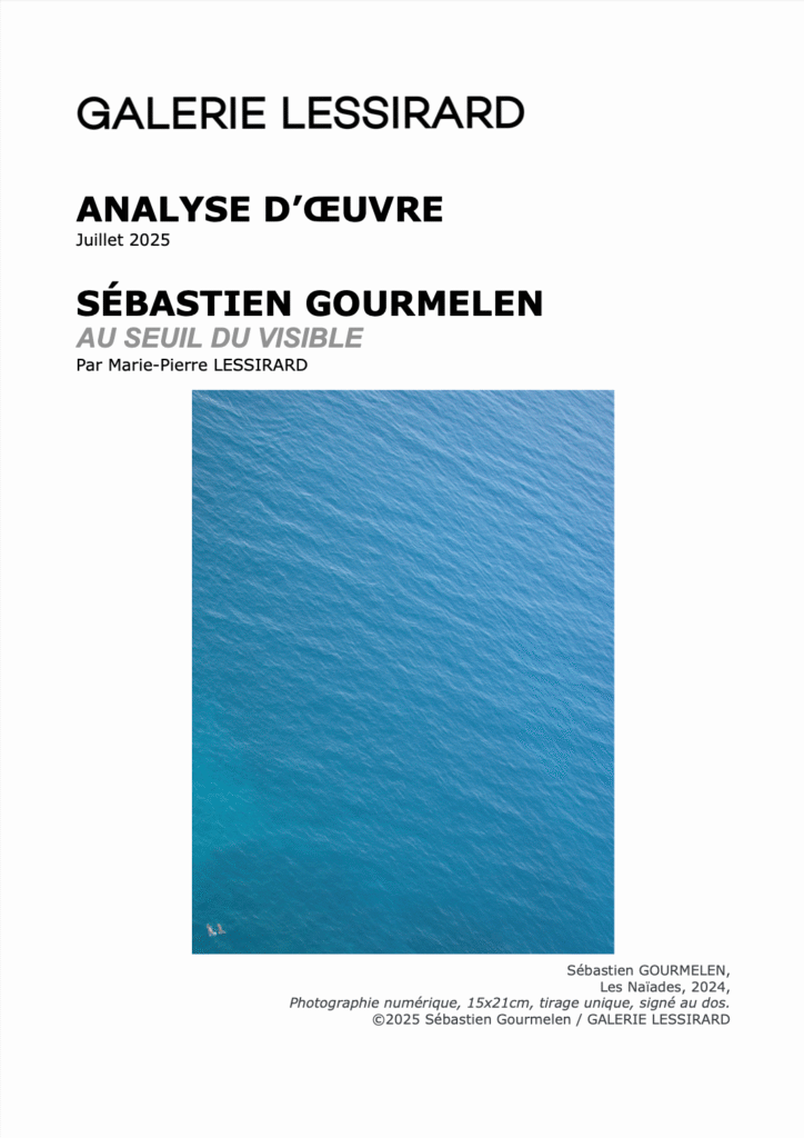Ce mois-ci nous vous proposons de découvrir une œuvre issue de la série Les Naïades de Sébastien Gourmelen. Cet essai explore les multiples strates de l’image : immersion dans la matière liquide, jeu des seuils et dissolution de la figure, tension entre lumière et surface, entre mémoire et présence. Loin d’une simple description, le texte invite à questionner l’expérience du regard, la temporalité suspendue et la capacité de l’art à générer de nouveaux espaces de perception.